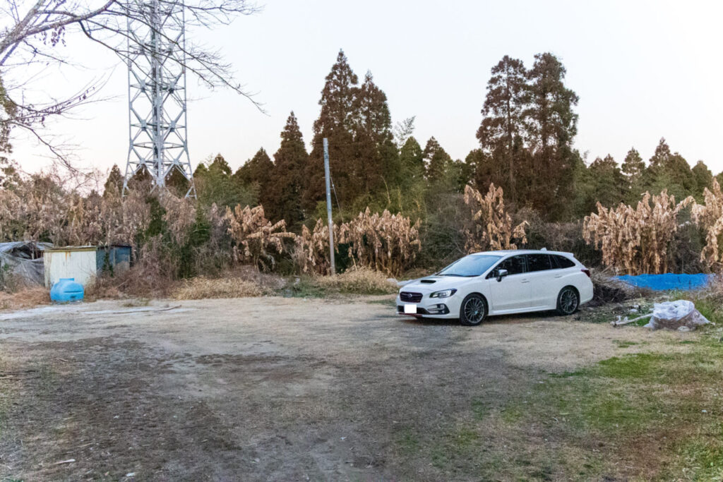 この看板を確認して右折すると駐車場があります。